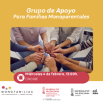 El miércoles 4 de febrero a las 13:00 h nos encontramos en un nuevo grupo de apoyo online para familias monoparentales, un espacio seguro y cercano donde poder compartir, escuchar y sentirnos acompañadas.